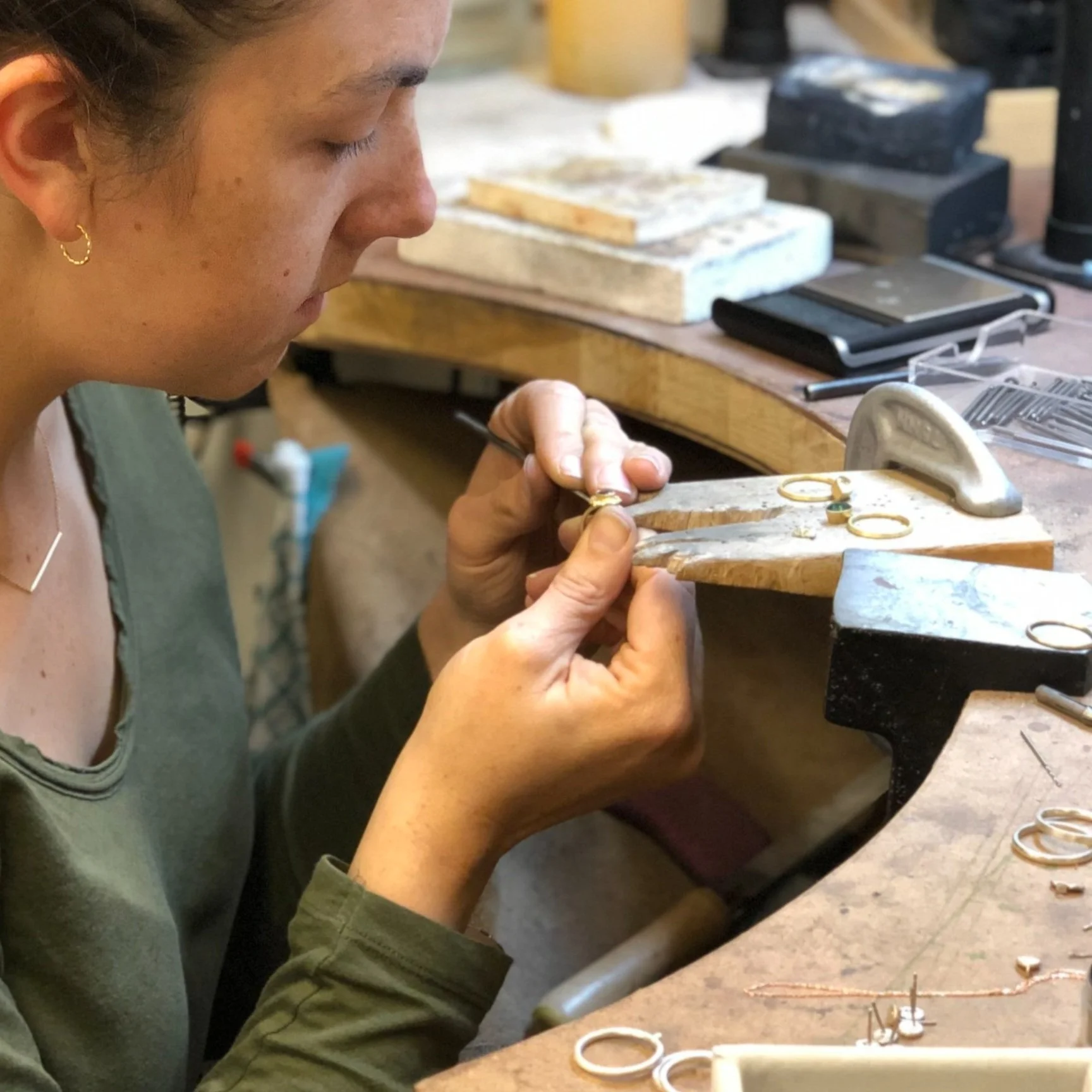 Our pieces that contain stones are hand set by Rachel or an expert stone setter in Hatton Garden. It is advisable to check your jewellery frequently to ensure stones are secure as wear sometimes allows the metal to move, depending on the piece. If you do notice any loose stones, please get in touch with us or contact your local jeweller. Some of the stones we use are one-of-a-kind, so replacements may vary from the original.